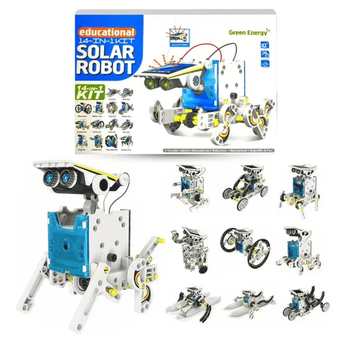 Imagine a world where your child can build a robot that wags its tail, a crab that scuttles across the floor, or even a zombie-chasing bot! With the 𝟏𝟒-𝐢𝐧-𝟏 𝐄𝐝𝐮𝐜𝐚𝐭𝐢𝐨𝐧𝐚𝐥 𝐒𝐨𝐥𝐚𝐫 𝐑𝐨𝐛𝐨𝐭 𝐊𝐢𝐭, this imaginative world becomes a reality.