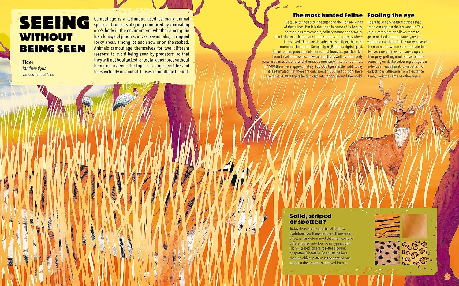 Learn about the venomous spiders from the jungle, how tigers use camouflage to hunt their prey or how coral and fish have learned to live in harmony with each other.