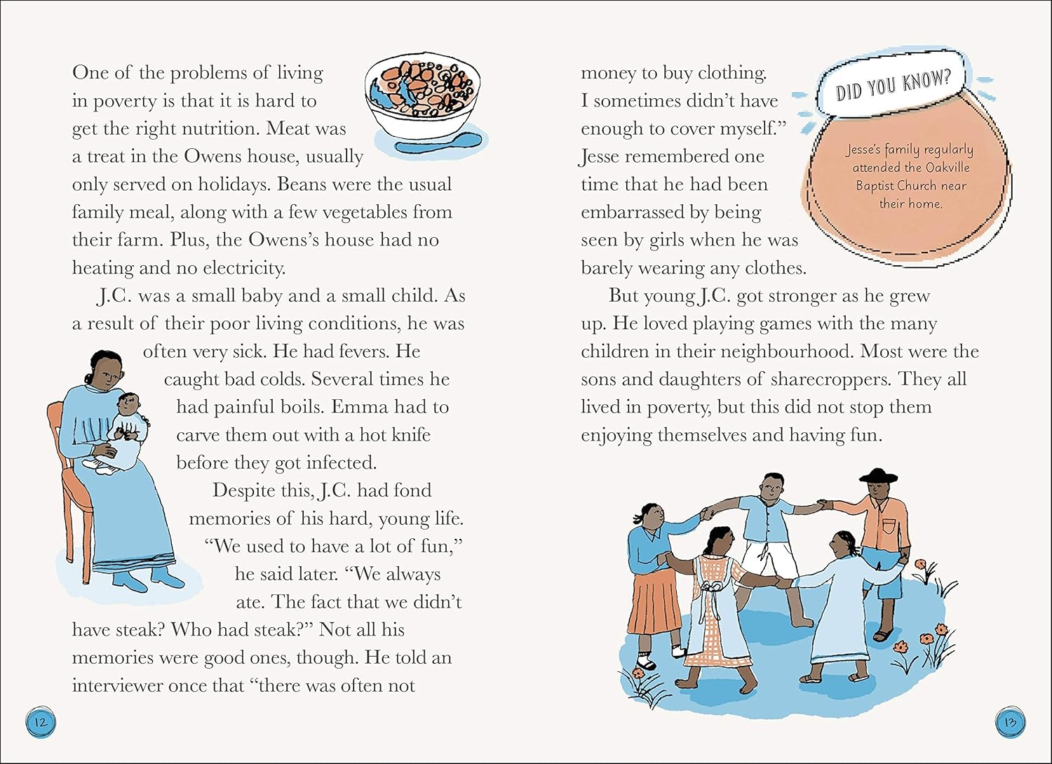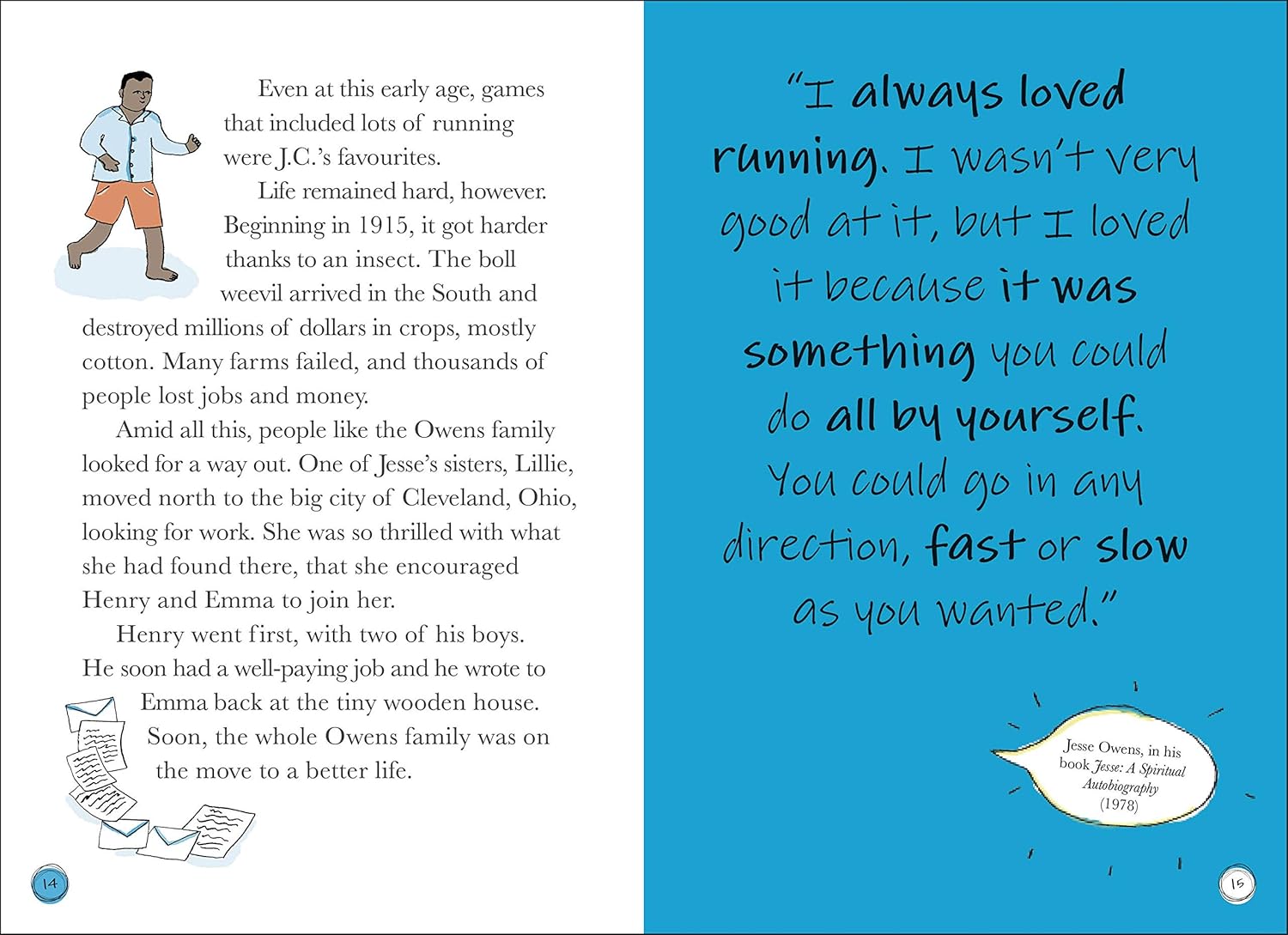 This biography, ideal for kids aged 8-11, charts the major events of Jesse’s life; from his childhood growing up on a farm in Alabama before his family moved to Ohio in search of better opportunities, to the beginning of his running career and years as a world record-breaking student athlete while working part-time jobs, all the way to the Olympics and beyond.