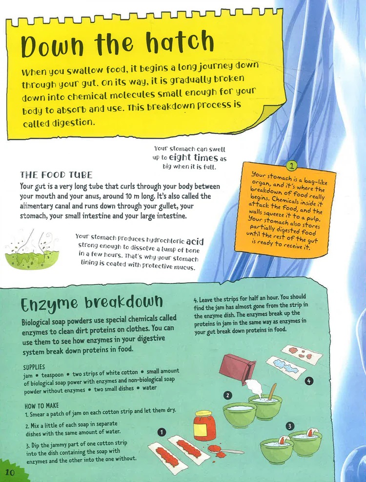 Packed with super-cool facts and hands-on activities, Project Body helps children to really engage with a core topic. From what’s inside your bones to how vaccines work, each spread features photos, stunning artwork and fun cartoons. Step‑by‑step illustrated projects throughout encourage practical learning – readers can make their own stethoscope, find out how sunscreen works, and create fake mucus.