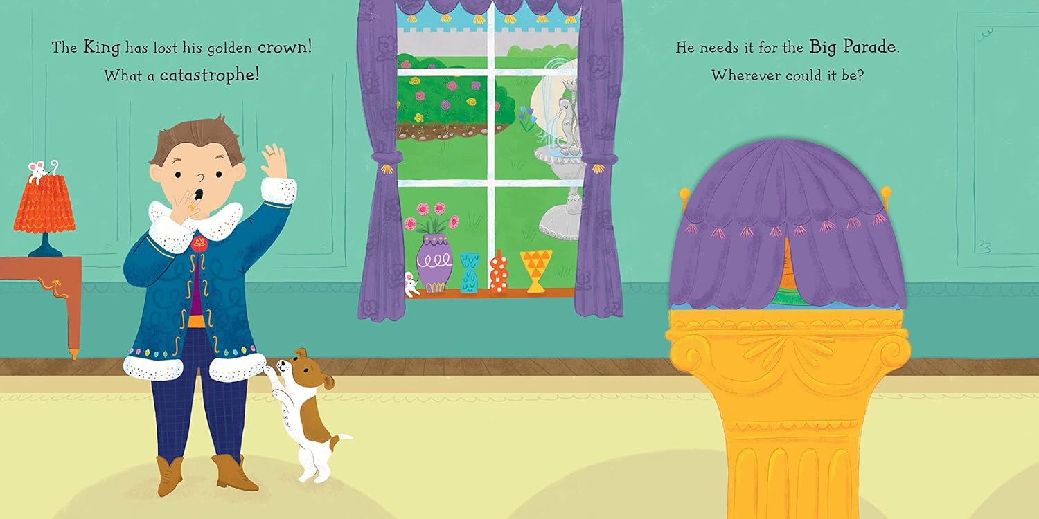 Travel around the palace, lift-the-flaps and help the King look for his crown in this rhyming tale for toddlers.