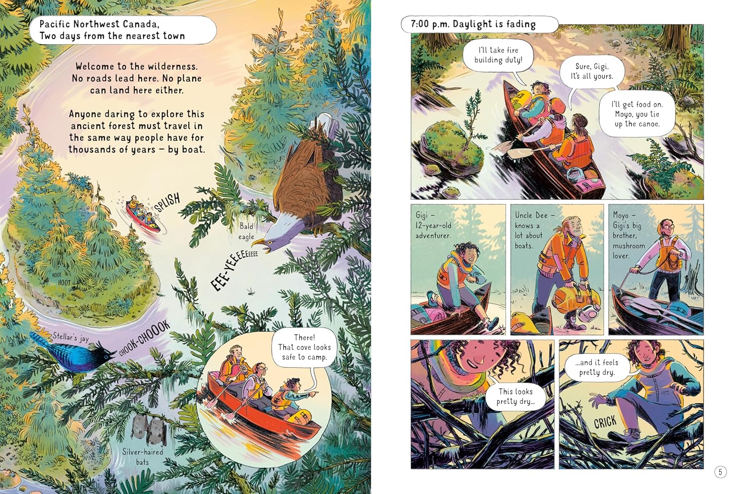 Bibi and Moyo have come from the city to explore the Great Bear Rainforest. Dee, an old friend of the family is their guide. But, when their kayak goes adrift, carrying most of their things with it, they find themselves stranded in one of Earth’s deepest tracts of wilderness.