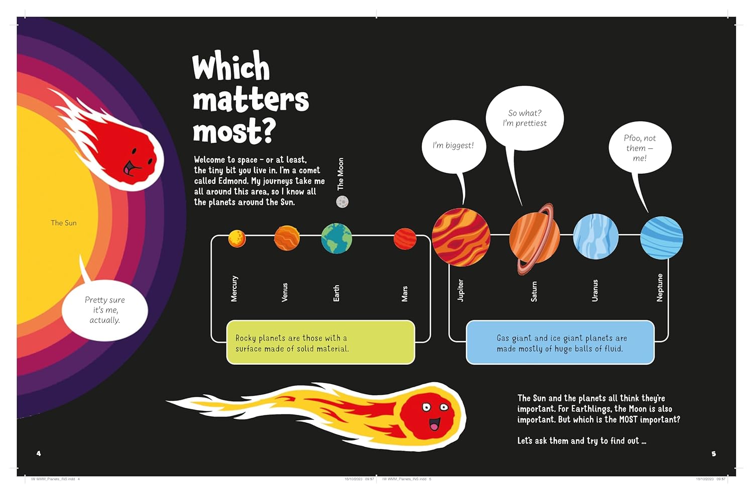 This book makes science learning fun and engaging for children aged 7 plus. Meet the Sun, everything in the solar system revolves around her, so surely she is most important? But what about Earth, the perfect place for people? Meanwhile Mars is sure red is best and Jupiter thinks being the biggest rules. So which really matters most?